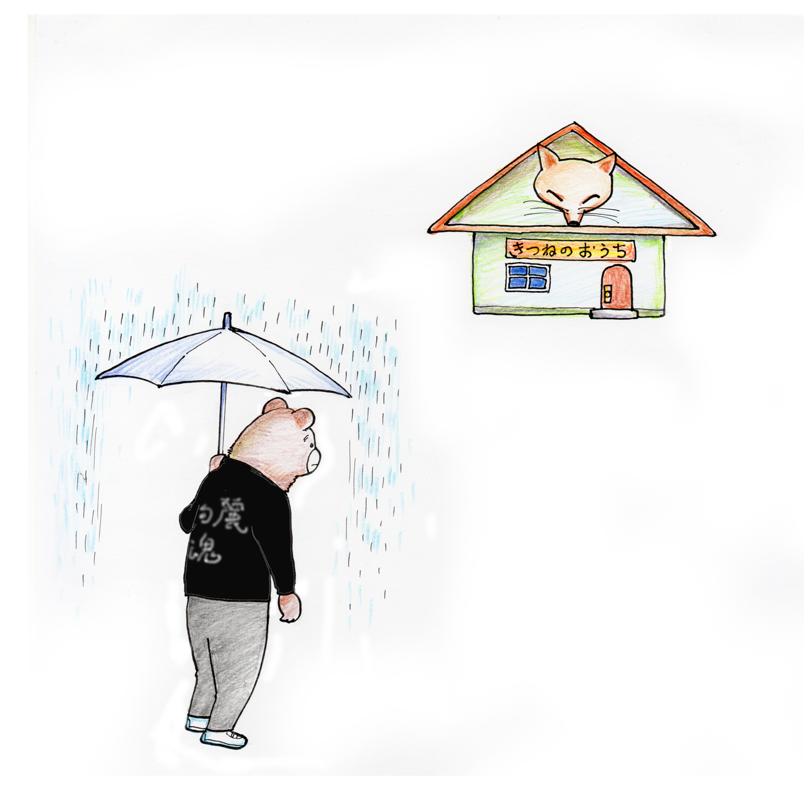 小雨がちらつく7月の中旬、狐のお家のブティックのお披露目式がありました。下見の時に女王様と一緒に同行した人は、いきなり狐になりました。一体ここは何なのだろうと女王様は驚きました。本性が現れる場所なのかと驚き今日のお披露目式を楽しみにしていました。集う方々のお名前をみると狐でなく狸だったり、よくわからない生き物だったり…。女王様は「?」と首をかしげるばかりです。狐のお家に向かっていると熊が「高句麗魂」のTシャツを着、傘をさしてお迎えに立っていました。