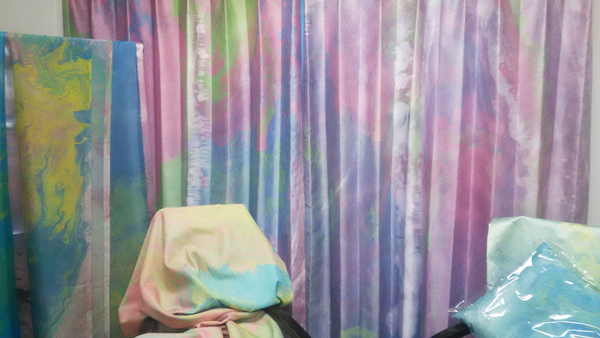 高知での展示会、講演会は盛況となり、とてもうれしいです。マーブリングのカーテンに囲まれたお部屋には、私の作品が盛りだくさんに展示されています。目に鮮やかな色合いが多いので、派手に思われる方もおられますが、身につけると、身が軽く、心も軽く、自由になります。空間とひとつである生命を感じ、自由な自分らしい表現ができることが愉しく、うれしいです。私もこの体感を経験すると、重い衣装も衣類も身につけることが苦しくなります。いつもどんな時も心に何もなく、軽やかに自由に生きていきたいと望みます。展示会の空間は、空間に華が咲いたようです。未来に向かい力が湧いてきます。もっと美しく生きていきたい気持ちが生まれます。最近のいだきしん先生のコンサートメッセージにて強く美しく生きることを伝えて頂いています。そうありたく、日々、自分を変え、何があっても強く生きていけるようにと願い、考えるようになりました。弱音は無縁とのメッセージも常に心にあります。生きるということは何があっても解決することを考え、先を創ることと肝に銘じ生きています。