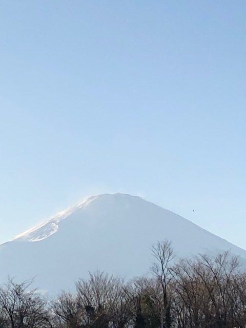 春めいた日差しが差し込む東京から比叡山に向かう道中、突然目の前に見たこともない程純白な雪をかぶる富士山が現れました。あまりに清やかで、聖なる美しい富士山の姿に感動し、神と出会えたように心が震え、心は何の憂いも濁りもなく、どこまでも澄んだ透明感あふれる富士山とひとつになっていました。とても幸せを感じました。日本の象徴と感じてきた富士山を見ると、いつも生きる力が生まれます。子供の頃から毎日見てきたのに、こんなに美しい富士山は初めて、と毎日感じてきたのです。今日も今まで見たこともない程美しいと感動しました。