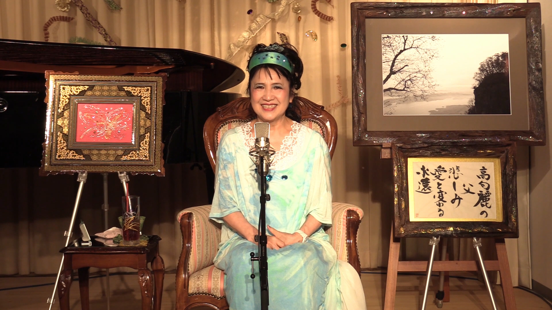 目に見えない世界が見えるように生まれついた私は、目に見えない世界を人にどのように表現したら通じ合えるのかは常に考えることであります。偶然の巡りによりマーブリング染めを始めるようになりました。今は比叡山のお茶室の中庭が制作工房となっています。比叡山の風、光、水、そして私達の生命が交流し偶然写し出される模様は、神々現われ、神と言われた存在現われ、目には見えずとも私達人間が生きる世界に存在する全ての存在が写し出されます。現われ出た模様を皆で見ることが出来、目に見えない世界を皆でわかり合えることが出来、とてもうれしいです。今日も大変ドラマチックな模様が誕生し続け、楽しく喜び合い、気づいたらあっと言う間に終わっていました。時間も暑さも忘れ、無我夢中で出来る事はとても幸せです。いだき講座を受け運命解放され、真の自分を実現出来るドラマチックな人生を生きてゆけることは希望と感じます。世界へ向かい動いていく事を心に抱き、コロナウィルス感染の状況が変わり自由に行き来が出来るようになったら世界に向かっていこうと考えています。ありがとうございます。