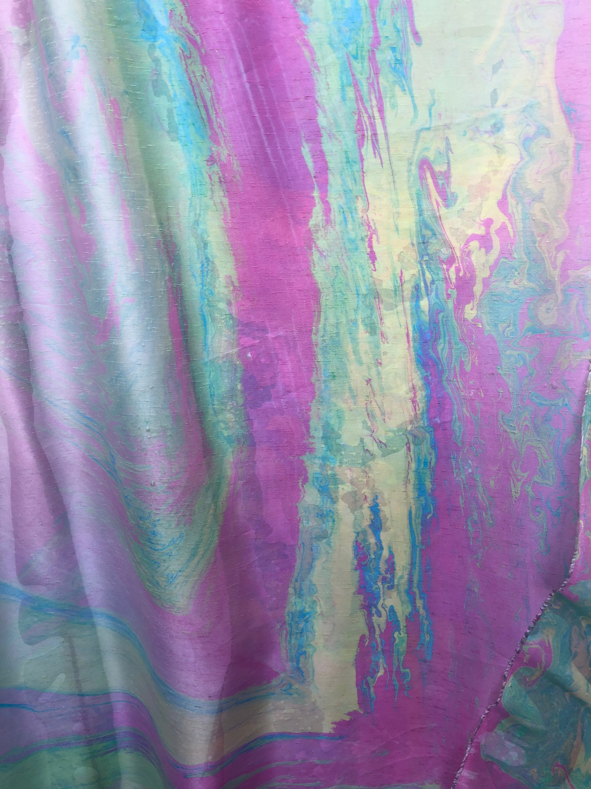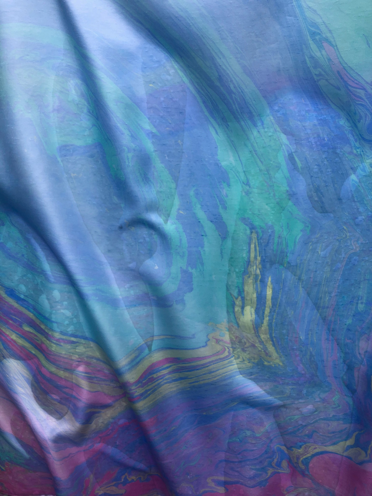 比叡山お茶室の中庭にてレバノンにあるシリア、パレスチナ難民キャンプにお送りするTシャツの染め上がりテストをしました。私が到着すると暖かい日差しが差し込み、枯れた木の枝や葉が輝いていました。さっきまで雪が降り、寒かったとスタッフは驚き伝えてくれました。いつも自然の生命は応援してくれます。絵の具を落とす時には、中東の乾いた大地やさわやかな風が吹いていました。浮き出る模様も中東の地にふさわしい模様と感じます。自然の生命がはたらいてくださることは、やさしく見事なまでに自然とひとつであることを実感します。私の心の目には乾いた大地の上を色あざやかなマーブリングのTシャツを身にまとった子供達が走り回っている光景が見えました。どんな困難で、過酷な状況であっても心明るく生きていければ。。。と想像するだけで涙が滲みます。心が明るければ、たくさんの働きかけを受け、良い実りが生まれると見えます。私は難民キャンプに心明るくなる物を送り続けていけるように、日本での仕事、活動を一生懸命に行いたいとやる気が生まれます。生きている意味は、人や世界の役に立ってこそあらわると考えます。自分だけ幸せであることはあり得ないのです。日本にていだきしん先生の講座、コンサートを経験させていただき、能力を上げ、縁があり始めましたエチオピアや中東の支援をさせていただきたいと考えています。そして世界の平和を実現できるように働いていく気持ちで生きています。人間の内面が豊かで美しければ取り巻く環境も皆が生きていける豊かな環境が創られます。人間の内面が飛躍的に豊かになり、愛を経験できます、いだきしん先生のコンサート活動に励み、人間が人間とし生きていける世界を創ります。ありがとうございます。