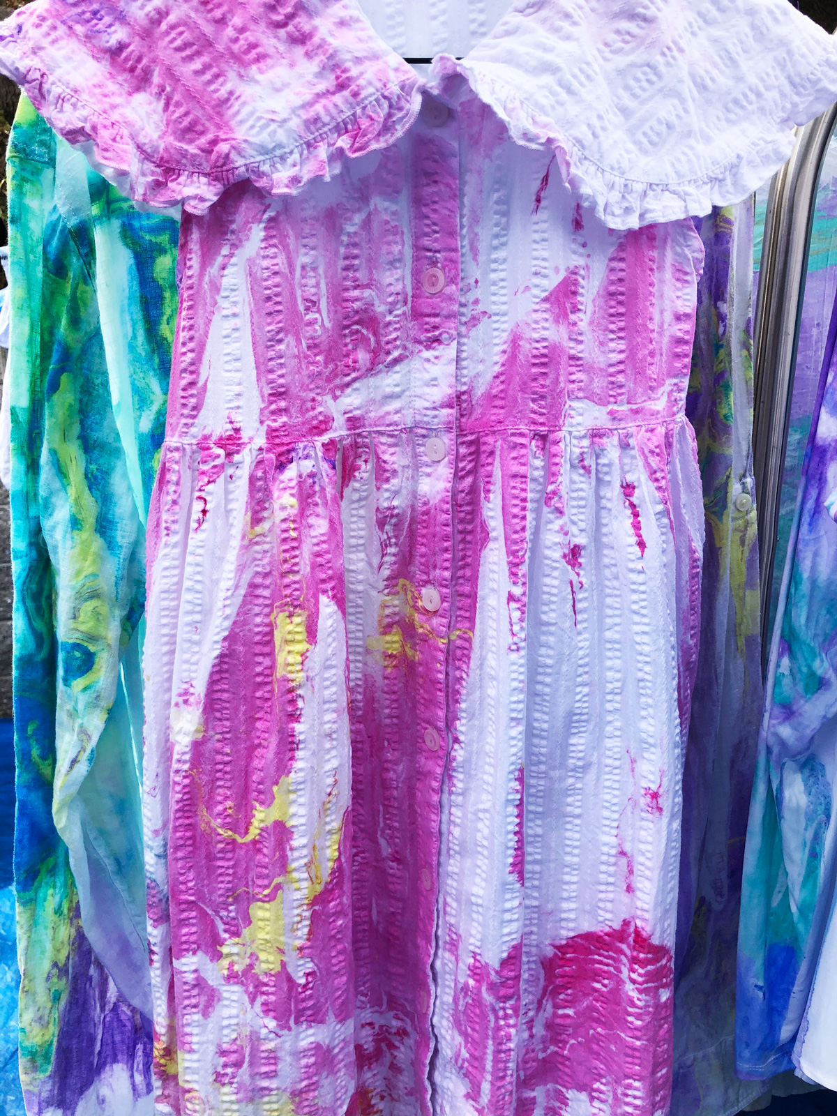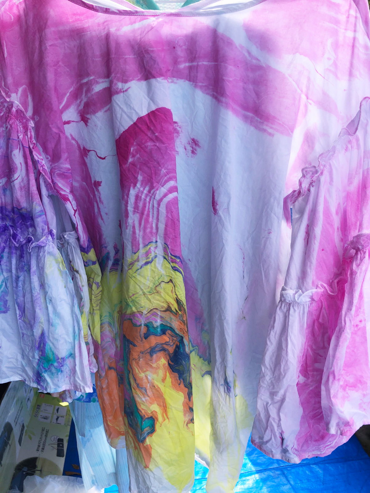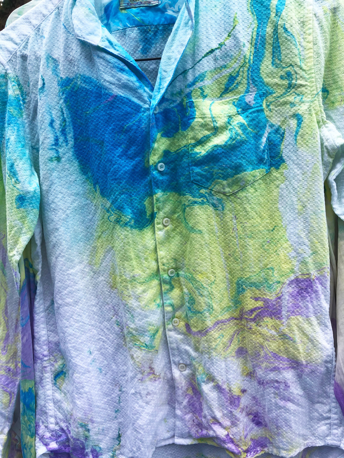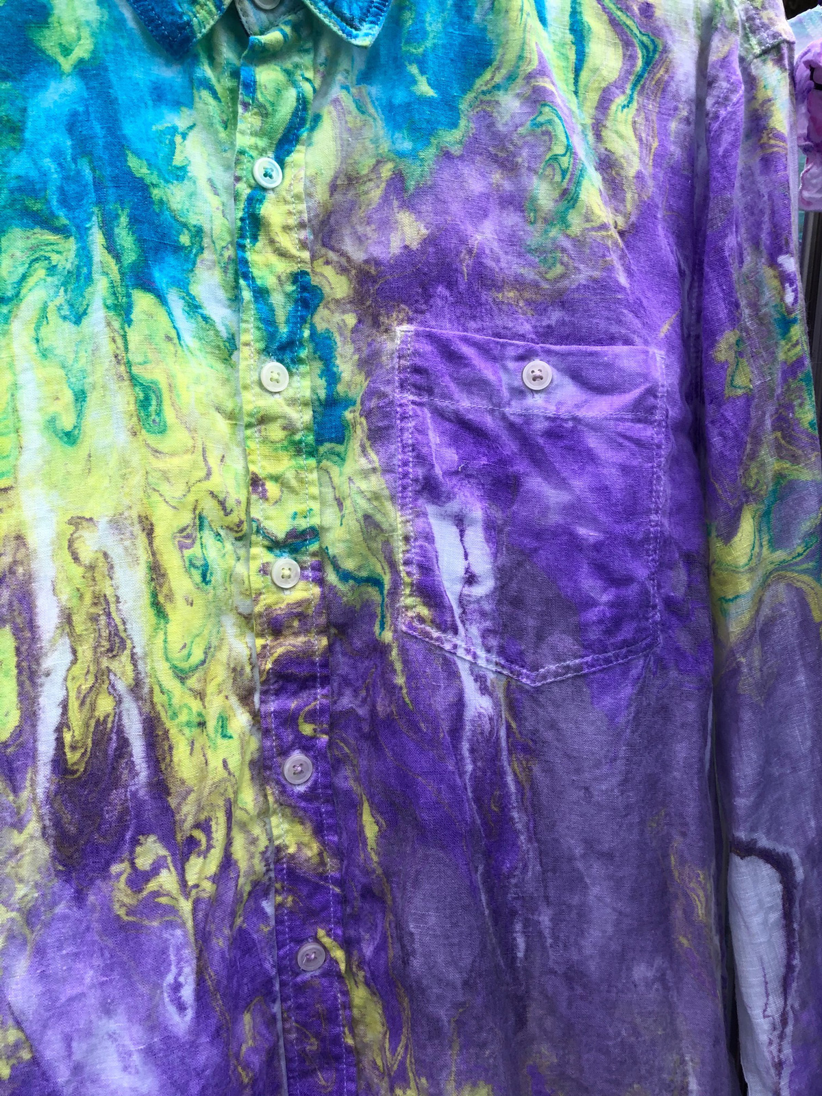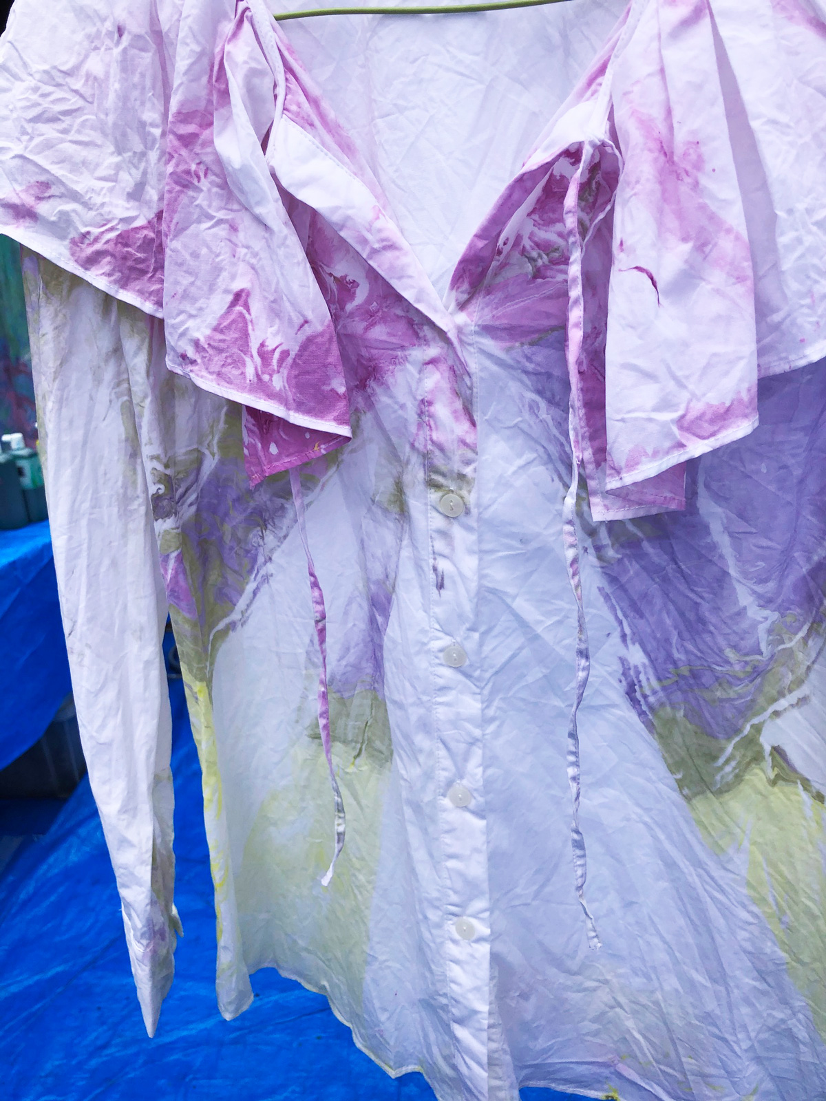 比叡山の斜面にあるお茶室の中庭にあるマーブリング制作場に着くと、うぐいすの鳴き声が天高らかに美しく響いています。ご挨拶していただいたと受け止め、心でお答えさせていただくと、鳥と一体となる喜びが生まれます。風が吹くと、桜のはなびらが舞い落ちてくるのです。空間に咲く花のように優美な舞を見せてくれる美しい姿に感動します。美しい空間にて新しい衣類のマーブリングをすると、それはそれは艶やかにドラマチックな模様が生まれます。自然の生命、空間、目には見えなくても、存在する全てがひとつであることを実感できる瞬間です。内面を表すマーブリングの衣類を身につけ、元気に明るく楽しく生きることは悪魔もよりつくことはないとはっきりと見え、喜び生まれます。これからはおおいなる存在の意を受け、実行できる人間となります。日々訓練していきます。人類全体が生き延びていける道を作ることなくしては生き延びていけないことは身にしみわかります。其の道を作ることはおおいなる存在の意をわかり、表し、動いていくことと考えます。古代、天意を受け、国創りをした先祖の魂が教えてくれます。共に動いていけますことは喜びです。世界で一枚のマーブリング衣類を身にまとい、自由な表現が生まれ、新しい世界を作っていきたいです。皆様にも是非お召しいただければ幸いです。ありがとうございます。