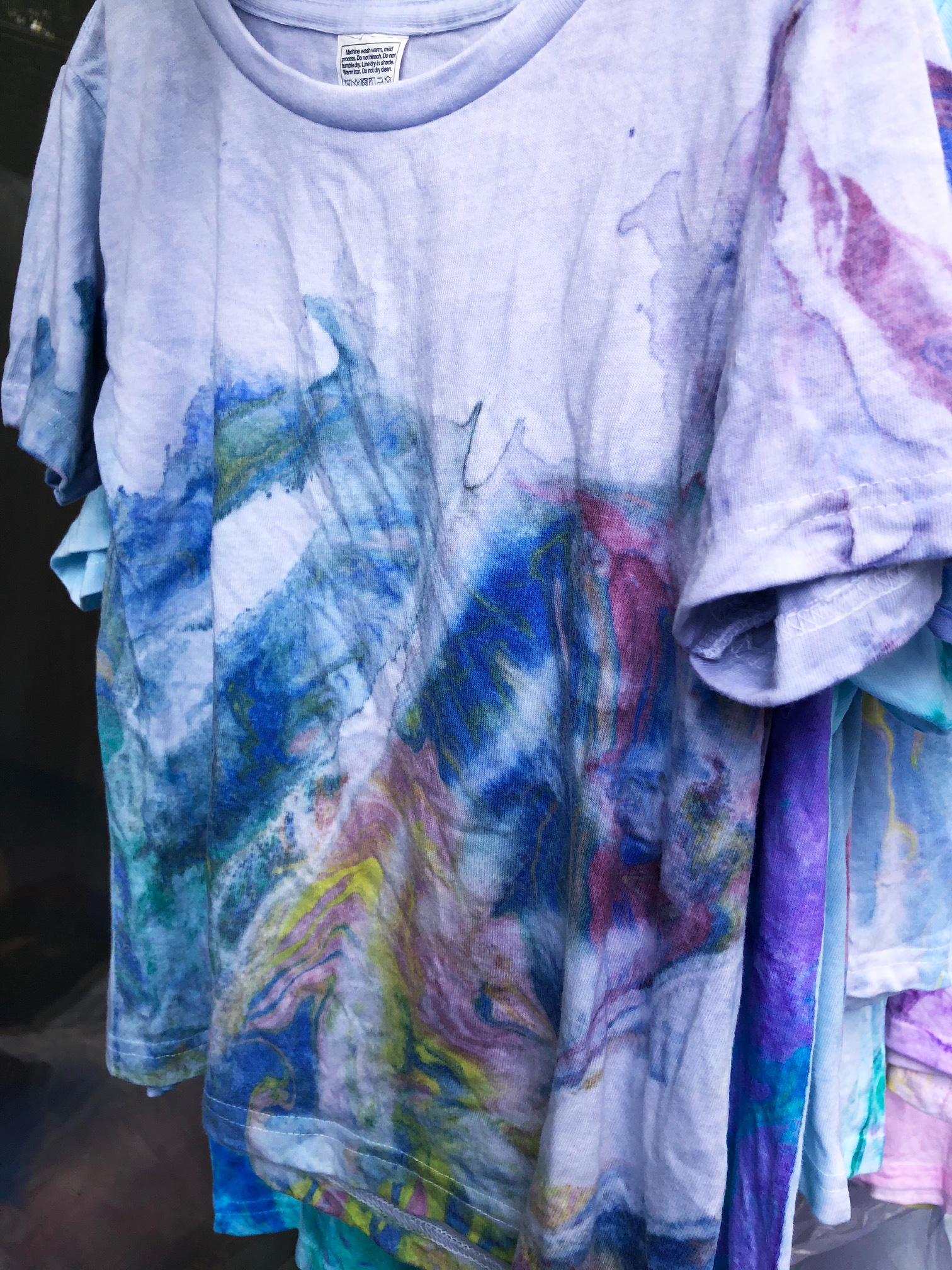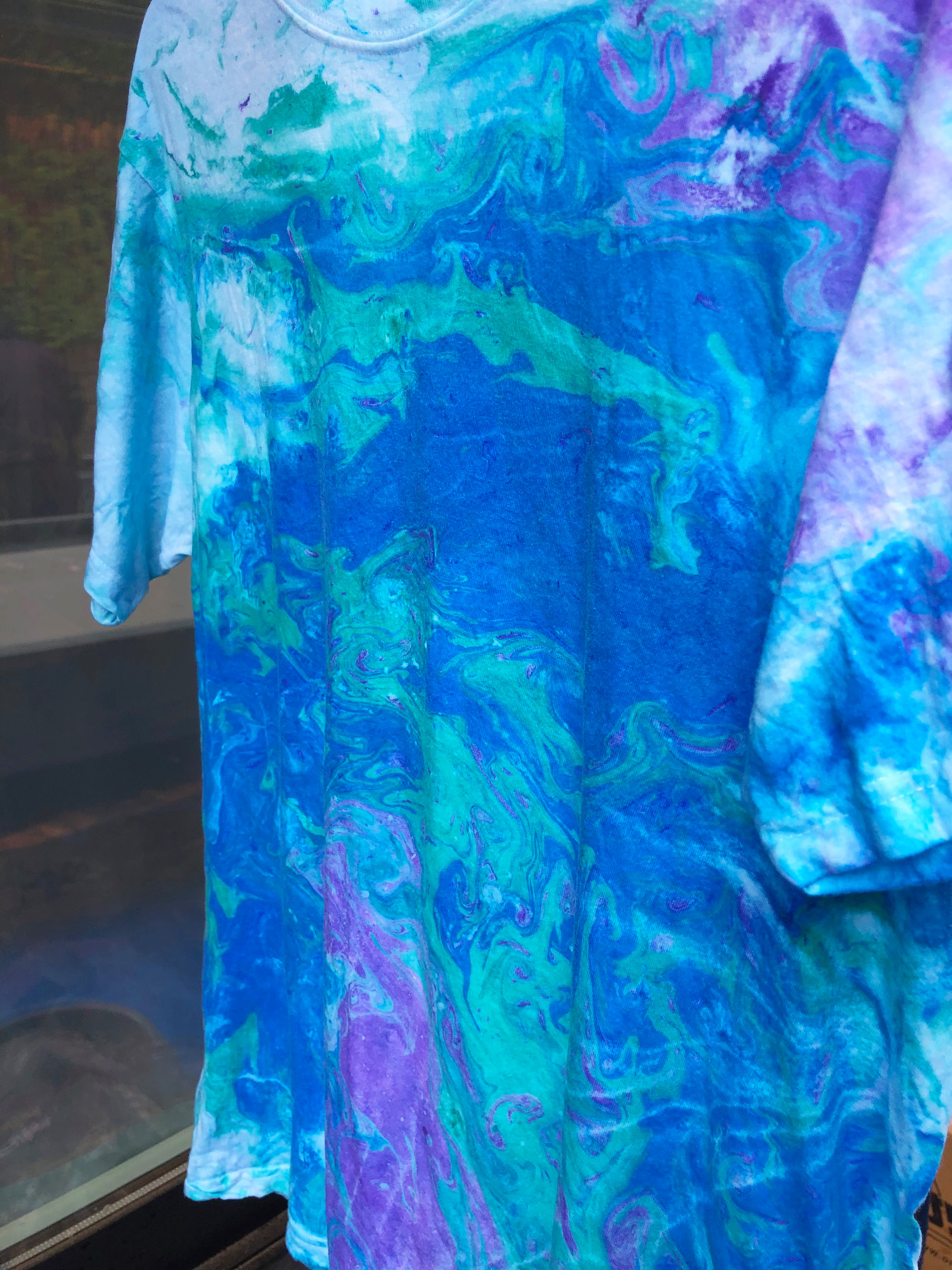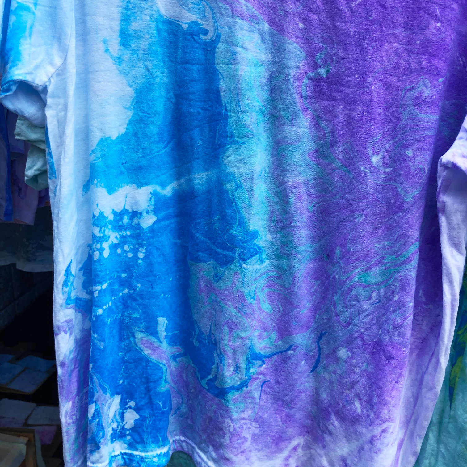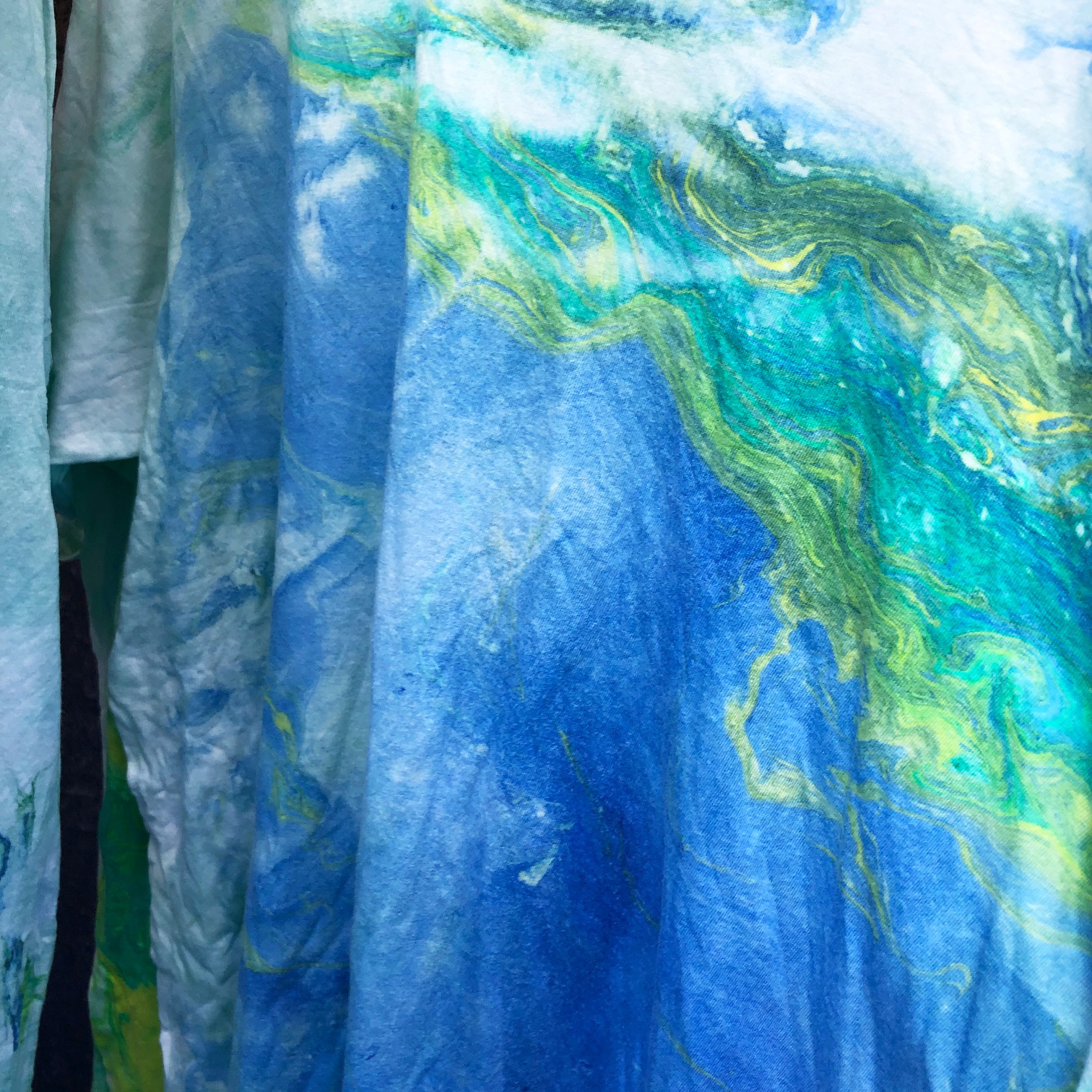 雨が降る比叡山のお茶室の中庭にあるマーブリング製作場にて、雨の中を皆がテントを張り、マーブリングの準備をしてくれています。雨音を聞きながら、山から吹く強い風を受け、まるで風に逆らうようにマーブリングをするのです。風が吹くと一瞬にし絵の具が流れていきます。自然のはたらきにふれ、喜び生まれ、流れる絵の具を見、笑いが込み上げます。そんな中でも雨が降っているからこそあらわる模様に心清められます。繊細で清らかで、心身が洗い浄められます。今日もレバノンの難民キャンプへ送るTシャツをマーブリングしました。制作が終わり、皆で雨の音を聞きながら山の風に吹かれ、コーヒー、サンドイッチ、おにぎりをいただくひと時、とても幸せを感じます。鳥もさえずり、共に語り合うのです。楽しく、幸せに生きながら、確実に世界を変え、生命が豊かに輝く世界を作っていけますことを昨日までの「高句麗伝説」3日間の経験により確かにわかりました。真にありがたい人生です。3歳の頃から願い続け、いだきをはじめました38年前からは根源解決への道としての、いだきしん先生の講座、コンサート活動をし続けてきました。人間の内面が変わることが根源解決と見出したのです。確実に世界は変わり、生命を傷つけ犠牲にするものは存在できない世界が創られています。まもなく、世界は一気に変わると見えます。私達は内面美しく生き、真の資質を活かし生きることで世界に貢献できるという大変恵まれた生き方ができますことに深く感謝します。昨夜も比叡山に帰ってきたら一陣の風が吹きました。明らかに魂の風でした。私達には魂も共に在ります。心強いです。経験を活かし、世界中の人がすこやかに暮らしていける時を一刻も早く作れますように働いてまいります。ありがとうございます。