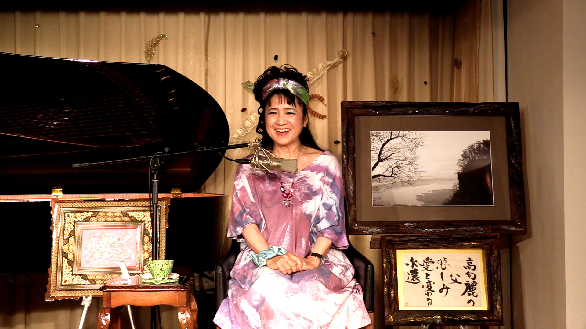 京都コンサートにて世界中の神々が合体する瞬間に遭遇し、人生は変わりました。常に脅かし、恐怖を与えてきた悪魔も解体し、力をなくしています。これから世界は変わります。翌日の今日、比叡山にありますお茶室の中庭にてマーブリング染めをしました。風も光も水も自然の生命も全て生まれ変わったことを生命で感じました。写し出された模様は新しい時代を写しています。マーブリング衣装は新しい時代のブランドと見え、希望と喜びを感じます。一点物ですので、世界で一人より存在しない人間にふさわしい衣装と感じます。それも内面と一致する物であれば、真の自分を表し生きていけます。大変喜びあふれるマーブリングでした。関わるスタッフと新しい世界が写し出された作品に魅せられました。とっても素敵です。仙台電力ホールでの、いだきしん先生のコンサート会場にてお披露目させて戴きます。皆様にご覧頂ければうれしいです。