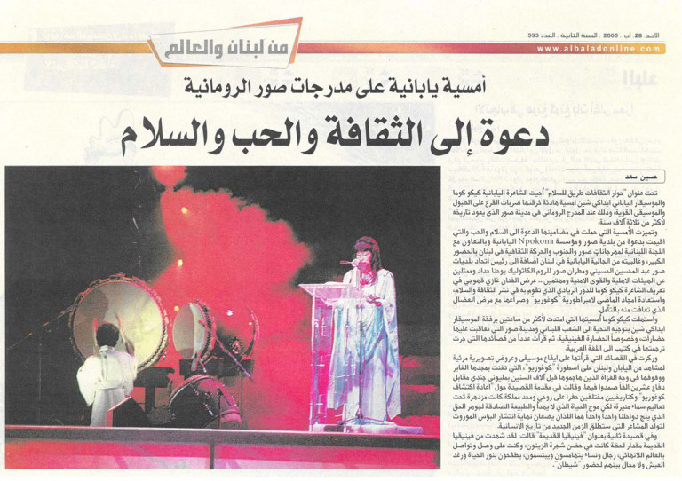 8月イスラエル軍の爆撃に遭ったレバノン支援とし、日本にてチャリティコンサートを7回開催。この戦争により中止となったヨルダン、ジェラッシュフェスティバルにての「高句麗伝説」開催予定日であった8月11日に日本の狛江エコルマホールにて平和を発信するレバノン支援「高句麗伝説」コンサートを開催。