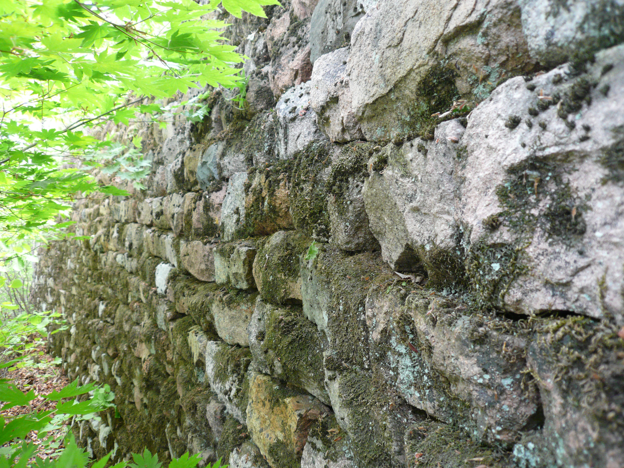石垣に手を当て