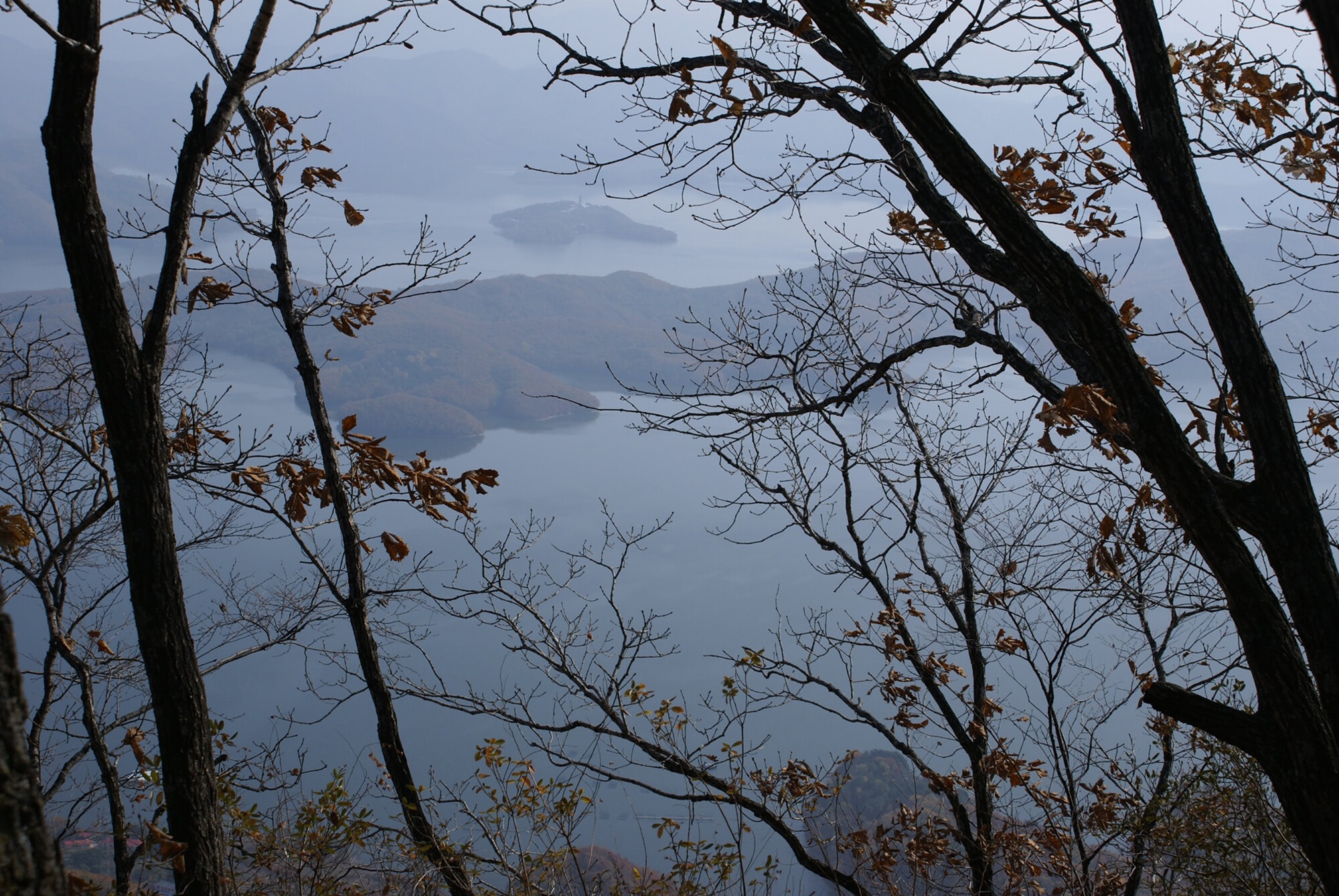 木々の間に見える龍の爪と呼ばれる湖