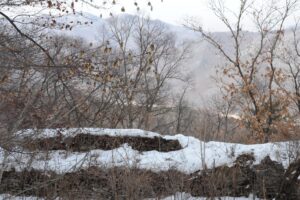 五女山城の石垣を歩く東明王様にお会い出来た事も魂では真であると感じています。これ程の喜びはありません。2000年前に生きた東明王様にお会い出来るというのが人間であるならば、人間とは本当に計り知れない存在であると魂震えるのです。雪の五女山をあっという間に歩き、またいつもの様に夕暮れ時に下山するのです。下山する頃には万全に来ましたが、体は冷え切っている事に初めて気付きました。いつもの様に朝鮮料理店に行き、温かい鍋のお食事を頂いた時には、冷えた体が温まり、とても美味しくほっとした事をよく覚えています。3月2日いだきを始めた日に、東明王様が初めて作った平城跡に行き、私も国を創ると本音が生まれ、雪の五女山にて東明王様にお会い出来、最高のいだきを始めた記念日となりました。雪の五女山の写真を、いだきしん先生は沢山撮って下さいました。私はふと、この写真が表に出る時高句麗の真が顕わると直感したのです。雪が解け、雪に覆われていたものがどんどん表に現わる様に、闇に覆われていた真がどんどん顕わる時が来ると見えたのです。そして高句麗の真も顕われ、歴史は変わっていくと見えました。雪の五女山の写真は、中々皆様に見て頂く機会がありませんでした。時が満ちていないのかと考えながら、時を待ちました。やっとお披露目出来たのは、京都事務所が作られてから京都事務所で写真展を開催した時の事であります。京都にて、雪の五女山の写真を全部展示する事が出来ました。圧巻でした。これで高句麗の真が顕わると感じ、大きく前進出来た感覚がありました。続く…。