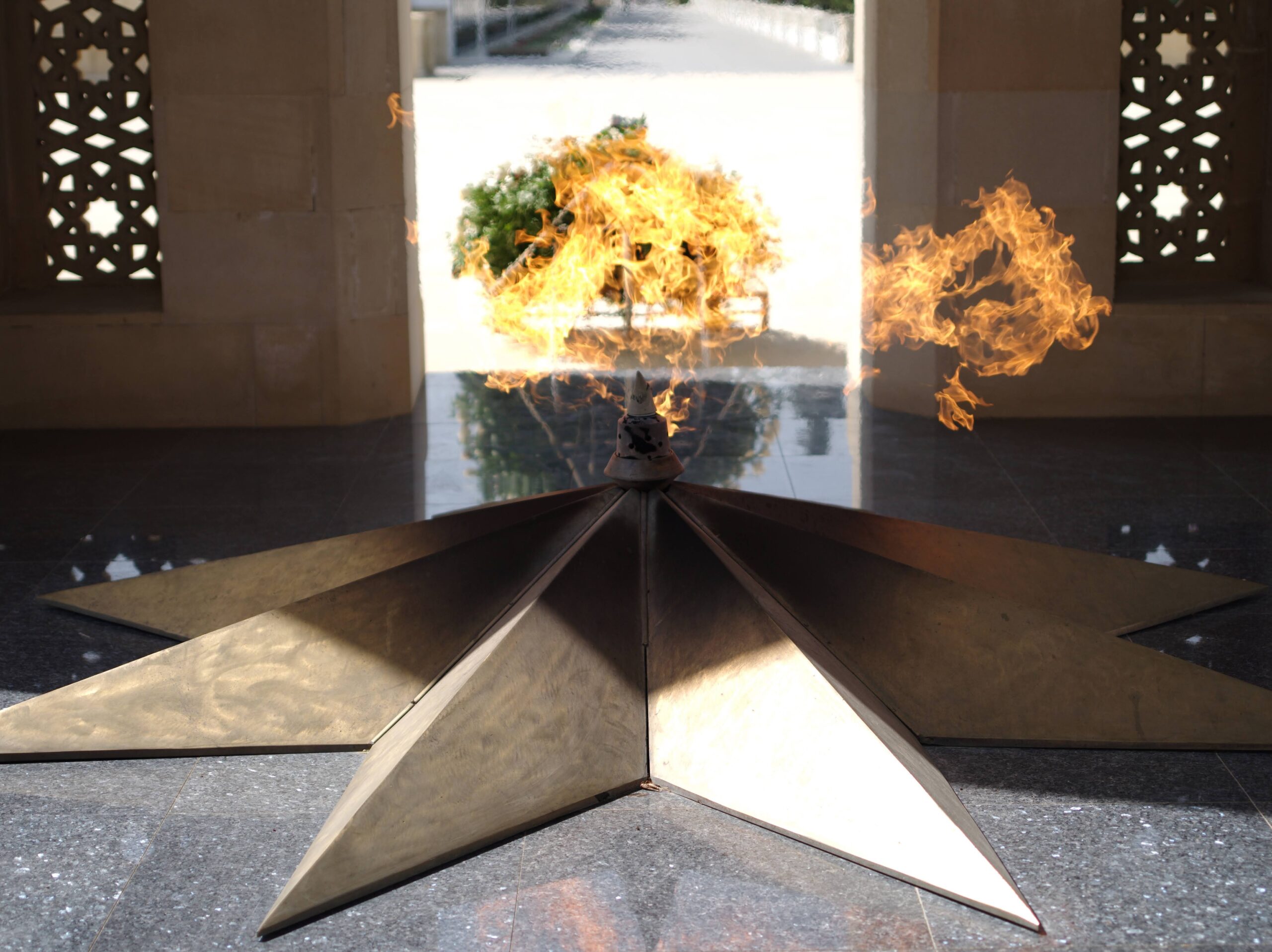 最初にご案内頂いた場所は慰霊塔です。アゼルバイジャンの首都バクを訪れる人には最初に慰霊塔をご案内するという事を聞きました。慰霊塔には永遠に消えない火が灯っていました。犠牲者の死を無駄にしない様にと永遠に祈りを捧げる火を灯していると聞きました。自然と黙祷し、手を合わせ犠牲者の魂が報われます事を心からお祈りしました。そして、亡くなった方々の顔写真が並べられている道をお一人お一人のお顔を拝見させて戴きながら、黙祷を捧げ歩きました。若い男性ばかりです。ふと、いだきしん先生がおっしゃいました。自分の生命を守り戦わなければ生きていけたのに、生命賭け戦っていく凄い人達だね、とおっしゃったのです。ロシア軍の戦車に向かい戦ったと聞きました。戦車に向かわなければ生命を落とす事はなかったのです。正義の為に戦った魂に心より黙祷を捧げました。そして、永遠に火が消えない様に平和を創る為に動き続けていく事が生きている人間の行う事であると身をもって分かりました。今でもバクの慰霊塔に燃え続ける炎が、私の内に燃えています。