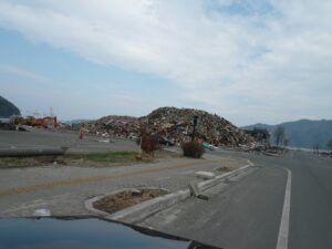 山田町に再び行く時が来ました。早めにホテルを出、準備万端に向かいましたが、早めに到着したにも拘わらず到着した時には長蛇の列が並んでいました。大変驚きました。コーヒーの炊き出しを待っている人が並んでいて下さったのです。私達は急いで車から荷物を降ろし、コーヒーを淹れる支度をし、コーヒーを淹れ始めました。淹れても淹れても足りず、ずっとコーヒーを淹れっぱなしでした。長蛇の列はずっと続きます。この時は2箇所でコーヒーの炊き出しをする予定でいました。どんなにコーヒーを淹れても列が絶えず続いていきますので、次のコーヒーを淹れる所へ行かなければならない時間が近づくにつれ、どうしたらいいものかと気が急いてしまいました。並んで待って下さる方々を置いて次へ行く訳にはいきません。かと言って次でお待ちの方もいらっしゃると考えると、本当にどうしていいのかと心の中で考えながらも、一生懸命コーヒーを淹れ続けました。すると突然雨が降ってきたのです。それも強い雨となり、並んでいた方々はその場から離れて行ったのです。ちょうど次の場所へ行く時間でした。何という働きでしょうかと大いなる働きよりないと感動し、感謝し、次は室内の炊き出し場所に入り、コーヒーを淹れました。こちらは既に沢山の方が並ぶという状況ではなくなっていました。役場の中でもありましたので、コーヒーを淹れてしばらくして、私は役場の1階から5階まで各部屋をコーヒーを持って回り、お一人お一人にコーヒーをお渡しし始めました。お盆に沢山の紙コップに入れたコーヒーを運んでいると楽しくて、どなたにお会いしても心から挨拶が出来ました。一緒に同行したボランティアスタッフの方は、冗談で、役場乗っ取り開始と笑って私が役場を回る姿を眺めていました。村づくりや国創りが出来る躍動を感じていました。ちょうど5階の町長室があるフロアに行った時に、先日町長とのアポイントメントをダブルブッキングしてミスした秘書と思われる方がいらっしゃいました。私はご挨拶をさせて戴き、せっかく東京から来たのですが、突然アポがなくなりとても残念でしたとお伝え致しました。その方は一回も顔を上げず、下を向きっぱなしでした。お言葉もありませんでした。もしかしたら少し精神が大変になっているのかと感じました。これだけの災害が起こり、沢山の方がお亡くなりになり大変な状態で皆様お仕事をされている事はひしと感じました。コーヒーをお渡しし、その場は離れましたが、再び町長さんとのアポイントメントは取ってほしいという事だけはお伝えして参りました。一通り全てのフロアの人にコーヒーをお配りし、ふと福利厚生課の部屋の衝立がしてある向こうで女性達にコーヒーをお出ししていました。7人の女性達と一緒にコーヒーを頂いている時に、お一人お一人自分の苦しみをお話しされ始めたのです。皆様、身内が亡くなり、家も流されていました。役場で働いていらっしゃいましたので、まさかお家が流されているとは思わなかったのですが、皆様、家が流されていてもずっと働き続けてこられた事に頭が下がります。とても肩が重くて首が回らない程苦しいとお話しされてきました。指圧したりお灸すえたり鍼をしたりとしても一向に良くならないと嘆いておられました。時々、お坊さんが供養にお見えになるけれど、それも全然良くならなくてとおっしゃいました。山田町は役場が遺体安置所になったと聞きました。自分達が働いている場が遺体安置所になってしまって…とこんな事態だから何も言えないけど、とても辛いとぽつりぽつりとお話しされました。