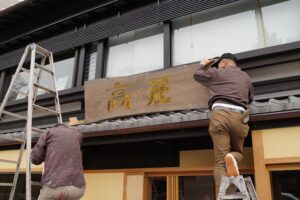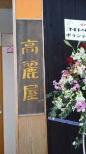 そんな時にふと通りがかった道で夢に見た物件を見つけたのです。路面店で京町家風の建物でした。赤ちゃんが「いらっしゃいませ」と言っている夢は、子供達が生きていける仕事を作って欲しいというメッセージと聞こえたのです。綺麗な京町屋風の物件でしたので、私はここが良いと感じました。急いで書かれている不動産屋さんに電話をし、来てもらいました。以前は果物屋さんであったと聞きました。何とその物件の一室は冷蔵庫だったのです。果物屋さんであったので一部屋が冷蔵庫であるということを知り、大変驚きました。こんな物件他にはないと驚きました。そして2階にはミーティングをするような、また展示会ができるような木のお部屋があり、住まいも兼ねて住居もあったのです。台所も浴槽もお手洗いも付いているのです。何より一室が冷蔵庫であるということで、ここにお味噌を入れられると感じ私はここに決めようと気持ちが決まったのでした。今でもよく覚えています。再び八坂の地に戻って、春の優しい小雨が降る中でいだきしん先生に電話をしたのです。私は京都にもう一つ店を持ちたいという話をさせて戴きました。承諾を得、私はすぐにその物件の契約へと進みました。京都中にいだきしん先生のコンサートをお伝えしたいという本音が生まれ、その道は路面店に店を出すという答えとなったのです。御所南に位置していますので、目の前は京都御所です。御所南は、不動産屋さんからお聞きするにはとても高級感があり多くの人が憧れる地であると知りました。御所を前にし高麗の看板を立てることができる巡りに魂の導きを感じました。2013年、インドから帰ってきた翌年の3月に京都御所南に立つカフェ「高麗屋」をオープンしました。いだきしん先生に看板を書いて頂き、看板屋さんに看板をつけて頂きました。