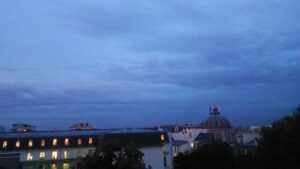 2019年にはパリにて私の心模様作品展といだきしん先生のピアノコンサートを開催する為にパリへと向かいました。最初はニューヨークで開催する予定でした。仲間がニューヨークに下見に行き、ギャラリーの場所やプレゼンコンサートを出来る会場を探して来てくれました。申し込みするばかりとなった時です。会場の申し込みをしたその日にビザの問題を指摘され、急いでビザを調べ始めたのです。アメリカの法律が変わり、中東や北朝鮮に行ったパスポートを持っていると入国出来ない懸念があるという事を知りました。日本にいらっしゃるアメリカ法の弁護士や行政書士、そしてアメリカ在住のアメリカの弁護士さんに相談しましたが、いだきしん先生も私も中東に数多く行っていますので、恐らく入国出来ないという判断となったのです。少しでも懸念がある状態で行く事は当然考えていませんので、ニューヨーク行きは断念しました。その時9月にはどこか行かなければいけないという事だけ感じていましたので他の国を探しました。薫る香りを辿ればパリだったのです。個人的にはパリは好きではなく、前回行った時にも二度とここには来たくないと感じて帰って来た事をよく覚えていたのです。が、薫る香りを辿ればパリよりないと見え、パリでの作品展とコンサート開催を決めたのでした。日本とパリを行き来しているボランティアの仲間もパリにいらっしゃいますので、色んな情報を取って頂き、作品展とコンサート会場を決める事が出来ました。行った事のない場所で作品展やコンサートを開催する事は、とても緊張しドキドキしました。が、行った本番でやるよりない状況でしたので、何があっても行なっていくという覚悟でパリに向かったのです。久し振りに長いフライトの飛行機に乗りました。意外に快適に楽しく過ごせた事で、ほっとしました。そしてパリの空港に到着した時は心が浮き立っている事にほっとしたのです。
