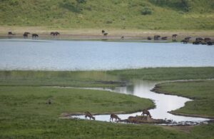 ある所でライオンがバッファローを食べている所に遭遇しました。私は思わず目を塞ぎ、一気に心が暗くなりました。完全な鬱状態になってしまいました。苦しくて涙がポロポロ流れてくるのです。大自然の中で、何でこんなにも心が暗くなってしまったかと理由が分からずに苦しみました。ただ、動物が動物を食べる事を真正面に見れず、受け止める事も出来ず、とても苦しく、やり切れない思いで一杯だったのです。これが自然の働きなのかと考えもしましたが、目の前でその姿を見ると、耐え難きものがありました。その時から鬱状態となってしまい、とても辛い状態が続いたのです。美しいフラミンゴのダンスを見、伸びやかに長閑なカバの姿を見、また、ヌーが集団で歩く様を見、鬱である状態が時々和んだり、安らいだりする事で何とかサファリパークでの撮影を通り抜けたのでした。