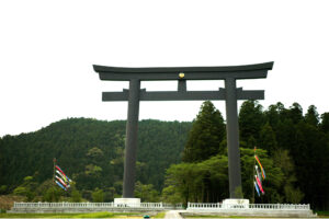 2003年7月、熊野本宮大社 大斎原でのコンサートの日となりました。朝から土砂降りの雨が降っていました。熊野本宮大社、また熊野詣についてお話を聞いた事が心を占めていました。「熊野は聖地であり、何人も、男女も、どの様な宗教の人も受け容れる。受け容れられ、あるがままが現る」と。「これが御利益」と聞きました。あるがままが現れ、行いが良ければ良しとし、悪ければ、気付き、正していく事が御利益の本当の意味である事を初めて知りました。熊野本宮大社の宮司さんには、悪い人が来ると雨が降るとお聞きしていました。その言葉がずっと心にあり、コンサート当日のあまりの土砂降りの雨に心が陰ってきたのです。