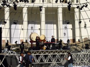 イランは、イスラム教の法律ですので、音楽は禁止されています。2004年にペルセポリスで開催出来た事は、奇跡のまた奇跡です。前代未聞と言われています。あの後、色々な世界中の有名なアーティストが、ペルセポリスでのコンサートを申請したそうですが、許可は下りる事はなかったそうです。前にも後にも、いだきしん先生より許可されていないという事を聞きました。音楽が禁止されているイランで、再びコンサートを開催する事は、とても困難な事でした。が、この度はペルセポリスでコンサートを開催していましたので、とてもスムーズに実現へと導かれたのです。いよいよ本番の時が来ました。信じられない様な気持ちもありながら、心は嬉しく、わくわくし、イランへと向かいました。イランの街を歩いていると、女性達のスカーフがとても華やかになっていました。私は、初めて行った時、女性達のスカーフは、黒か茶色よりありませんでした。私も、政府の人に茶色っぽいスカーフを頂きました。ところが、この度イランに行く時に、政府の人から花柄のスカーフを頂いたのです。花柄のスカーフをしていいのかと、戸惑いましたが、政府の人が下さったのだからいいのだと受け止め、スーツケースに入れて行きました。