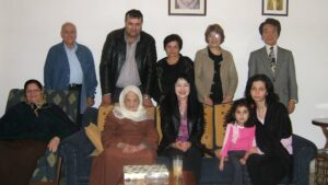 ティールでは、ガジ教授のお母様の御家も訪ねました。初めてティールに来た時に、時間を忘れて遺跡の中で楽しんでいました。名残惜しく遺跡を離れる時、目の前の御家が色とりどりの花が咲き、とても美しい御家だった事が心に残っています。「この家に住む人はいいな」と心の中で感じたのです。毎日美しいフェニキアの遺跡を見、美しい海を見、爽やかな風に吹かれ暮らしていける事は素敵だと感じたのです。当時は、常に戦争が絶えず、街が破壊される事を繰り返されていたとは迂闊にも知りませんでした。素晴らしい地で暮らしていける事がいいと感じていたのです。その御家が、まさかガジ教授のご実家だったとは、後から知った時に深いご縁を感じたのです。あの時、羨ましいと感じた御家を訪ねる日が来たのです。お母様にお会いした時、涙があふれました。亡き母に会えた様に感じたのです。亡き母に会えて嬉しくて、涙があふれたのです。お母様は「娘よ」と迎えて下さいました。そして、ずっとここに住んでいればいい、ともおっしゃって下さいました。初めて来た時「この家の人はいいな」と感じた事を思い出しますと、ここに住んでいい、と言って頂けることは夢の様です。が、現実は、ここに住む事は出来ない自分である事はよく分かっていますので、お気持ちをありがたく受け止め、喜びました。ガジ教授のご家族もおられて、皆でこの様にし、共に暮らし、毎日家で過ごしていると聞きました。ティールでは時折、外でチャイを飲んでいる風景を見かけます。レバノンでの暮らしは、日本での暮らしとはまるで違う事をまた知ったのです。人間の人生を考えます。私が戦争中に、生命の無事を祈り作りました心模様を描いたショールやループタイをお母様にプレゼントさせて戴きました。とても喜んで頂きました。心温まる、涙あふれる尊いひと時を過ごす事が出来ました。