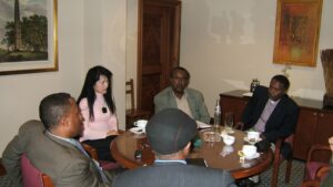 私は狭い飛行機の中で、全く休む事も出来ずに疲労困憊でしたので、体がしんどくて、立っているのも精一杯という状態で最初は中々力が入らずにいました。その建物の中では男の人がコンクリートの上で寝ていたりするのです。エチオピアに来るとよく見る光景ですが、私はその様な光景を見ると、心が辛くなってしまうのです。こういう所でカフェを作ってもどうなのかと、最初の物件は迷いが生まれました。そして次は、これから建つ大きなビルの1階の物件でした。エチオピアコンサートの時に大変お世話になった、当時の駐日エチオピア大使の奥様のご家族は財閥でしたので、その一族が建てるというビルでした。ここが良いと感じ、申し込みをすると決めました。とても希望を感じました。そして、予てより一緒に焙煎工場を作ったり、カフェを作ろうと話し合っていた、ヤルガッチャフェ村に連れて行ってくれた会社の社長さんの家にお邪魔致しました。社長さんの家は、以前も行かせて戴きましたが、この時訪ねた家は、エチオピアでは見た事もない町並みが作られていました。西洋的な瀟洒な家が沢山作られていたのです。その一角の、一つの家が社長さんの家でした。とても大きな家です。奥様が手料理を振る舞って下さいました。私は普段は、ごく限られた知っているお店でより食事をしないようにしていました。どこのお店で食事をしても、すぐにお腹を酷く壊してしまうからです。宿泊しているお城の様なシェラトンホテルでさえも、レストランで食事をするとすぐにお腹を壊してしまいます。お腹を壊さない所はなかったのですが、それでも食べるものを選んで頂くと、まだ酷く壊さない事は覚えてきたのです。社長さんのお家ではすっかりくつろいで、楽しく頂きました。そして、社長さんと合弁会社の契約を交わし、握手し、撮影までして頂いたのです。エチオピアでの事業の始まりと、とても嬉しく、希望を感じ、ホテルに戻りました。