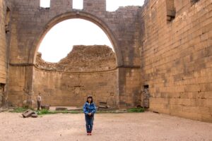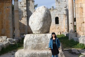 博物館の入り口には桜の花が咲いていました。ダマスカスに咲く桜の花も素敵だと眺めました。桜は日本の花と感じていましたが、シリアでも桜を見る事が出来、とても嬉しかったです。ダマスカスにてボスラという遺跡に連れて行って頂きました。