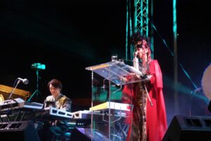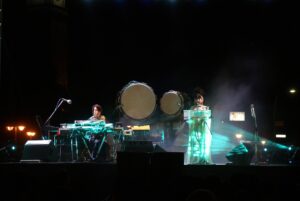 この様な場所で開催した事は初めてですので、緊張もしましたが、全ては遥か彼方に通じる内面を感じ、大いなる存在に表現する気持ちで舞台に立たせて頂きました。いだきしん先生の音が鳴ると、物凄い突風が吹き荒れました。私の衣装は風になびいて大変な事になっていました。ヘアセットも風が強すぎて、飾りがとれるのではないかと心配し、頭を押さえる様な始末でした。その場に参加した日本からの方々も驚いていたのですが、アーケードの真中に位置しますので、風は吹いていなかったと、皆驚いていたのです。その風は、魂の風と感じました。東からの大軍と西からの大軍が集い合流し、合体する光景が見えたのです。魂は雄叫びを上げて一致団結し、世界の平和を実現しようと勢いよく動き始めたのです。