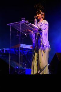 この様な場所で開催した事は初めてですので、緊張もしましたが、全ては遥か彼方に通じる内面を感じ、大いなる存在に表現する気持ちで舞台に立たせて頂きました。いだきしん先生の音が鳴ると、物凄い突風が吹き荒れました。私の衣装は風になびいて大変な事になっていました。ヘアセットも風が強すぎて、飾りがとれるのではないかと心配し、頭を押さえる様な始末でした。その場に参加した日本からの方々も驚いていたのですが、アーケードの真中に位置しますので、風は吹いていなかったと、皆驚いていたのです。その風は、魂の風と感じました。東からの大軍と西からの大軍が集い合流し、合体する光景が見えたのです。魂は雄叫びを上げて一致団結し、世界の平和を実現しようと勢いよく動き始めたのです。