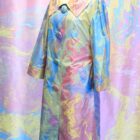 大きなボタンとマーブリングの組み合わせが可愛い七分丈のレインコートです。軽量なので持ち運びしやすく、スプリングコートとしてもご着用いただけます。