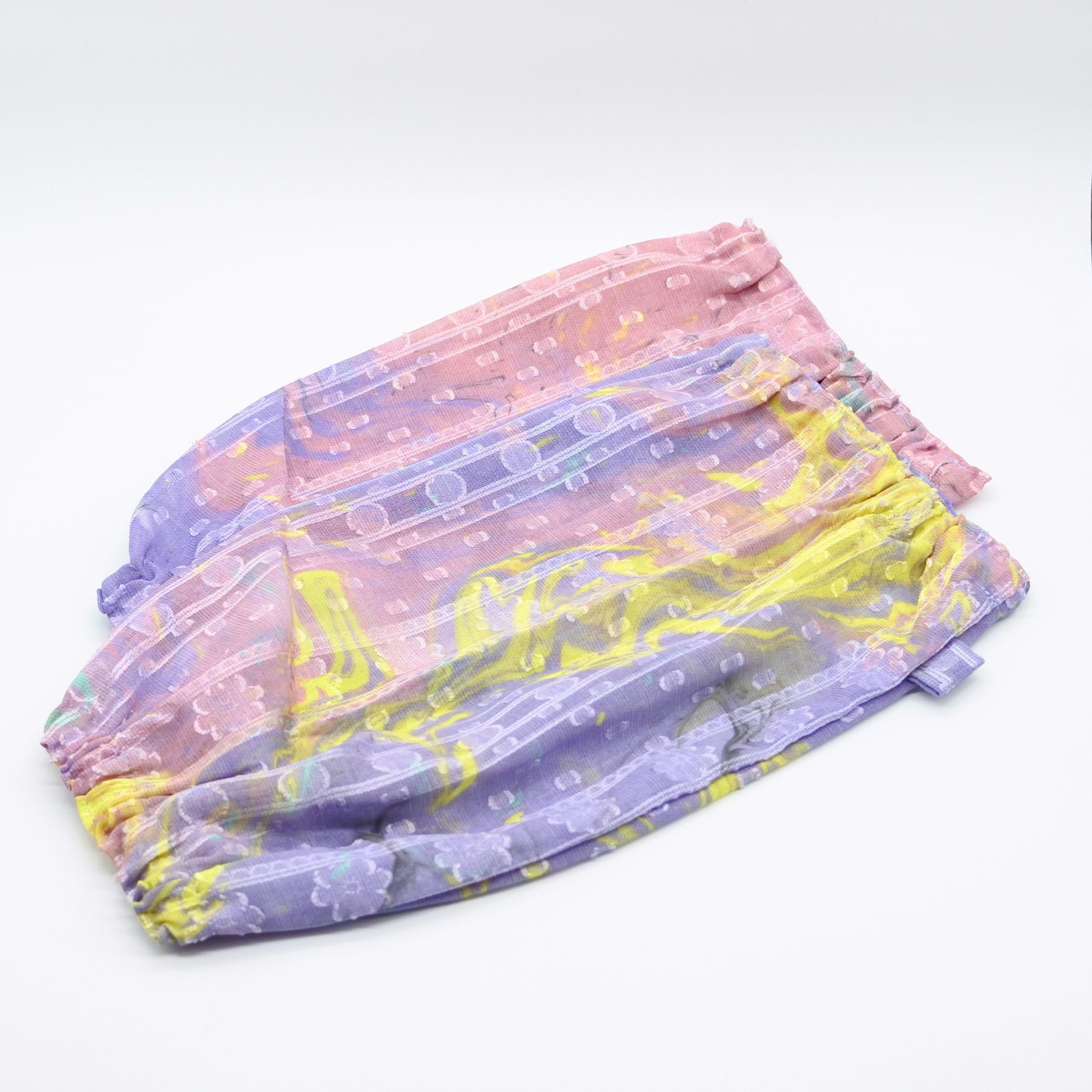 ジャガードレース生地にマーブリングプリントを施した、毎日のお仕事が楽しくなりそうなアームカバーです。袖口は使いやすいゴム仕様です。