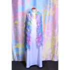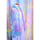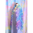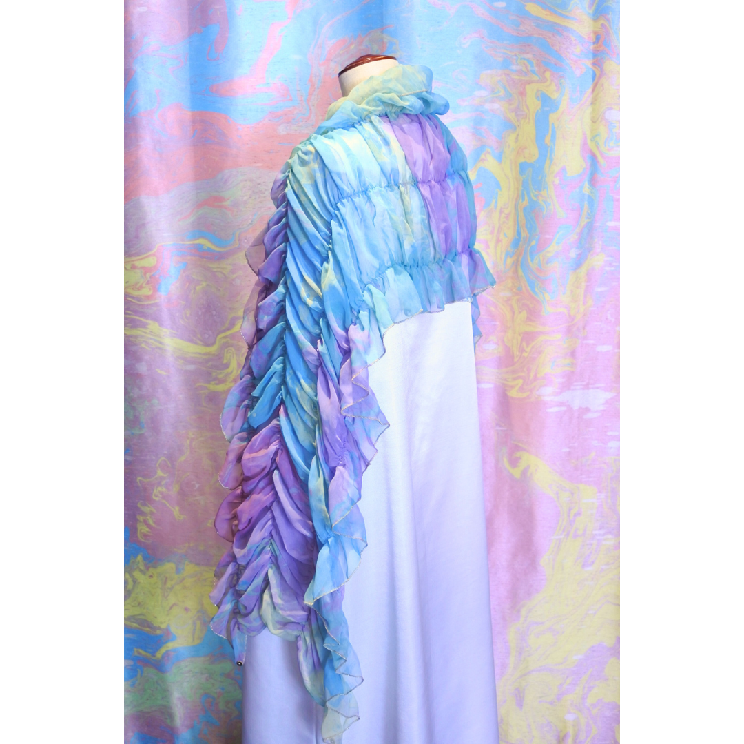 柔らかくシルクのように軽いシフォン生地にマーブリングプリントを施したシャーリングのショールです。さっと羽織るだけでとても華やかな装いになります。