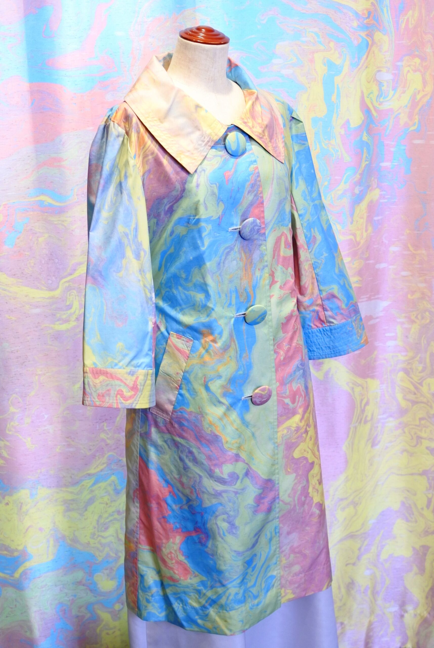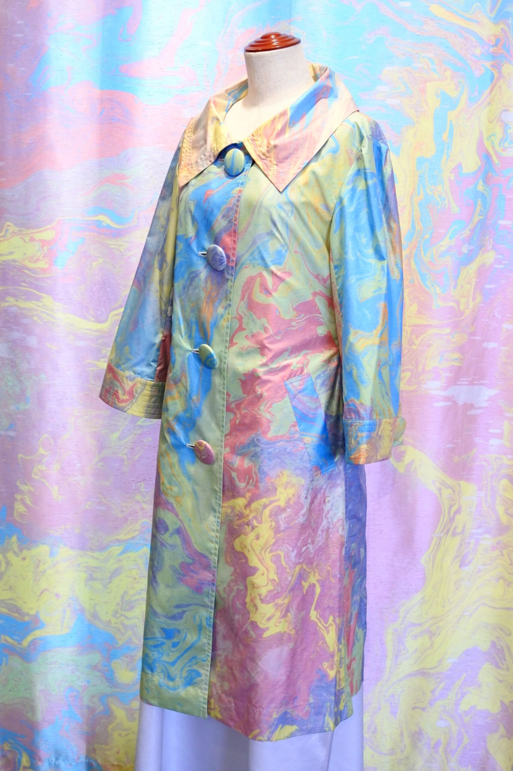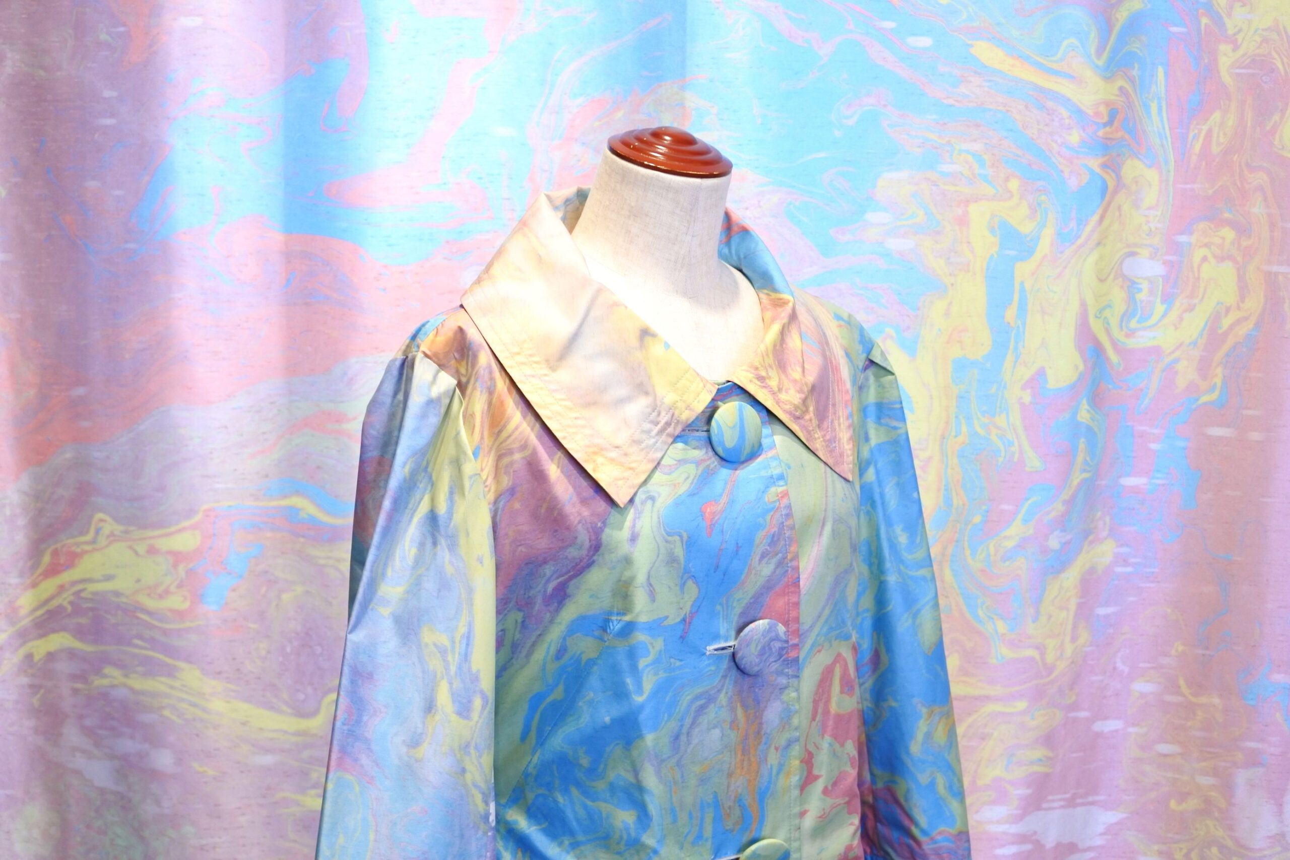 マーブリング くるみボタン レインコート個