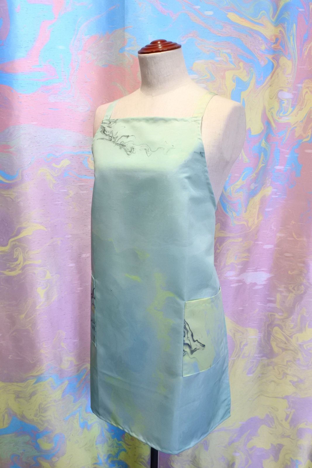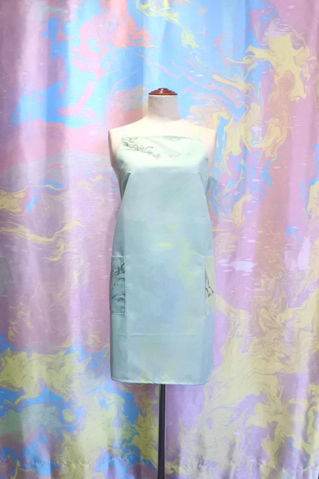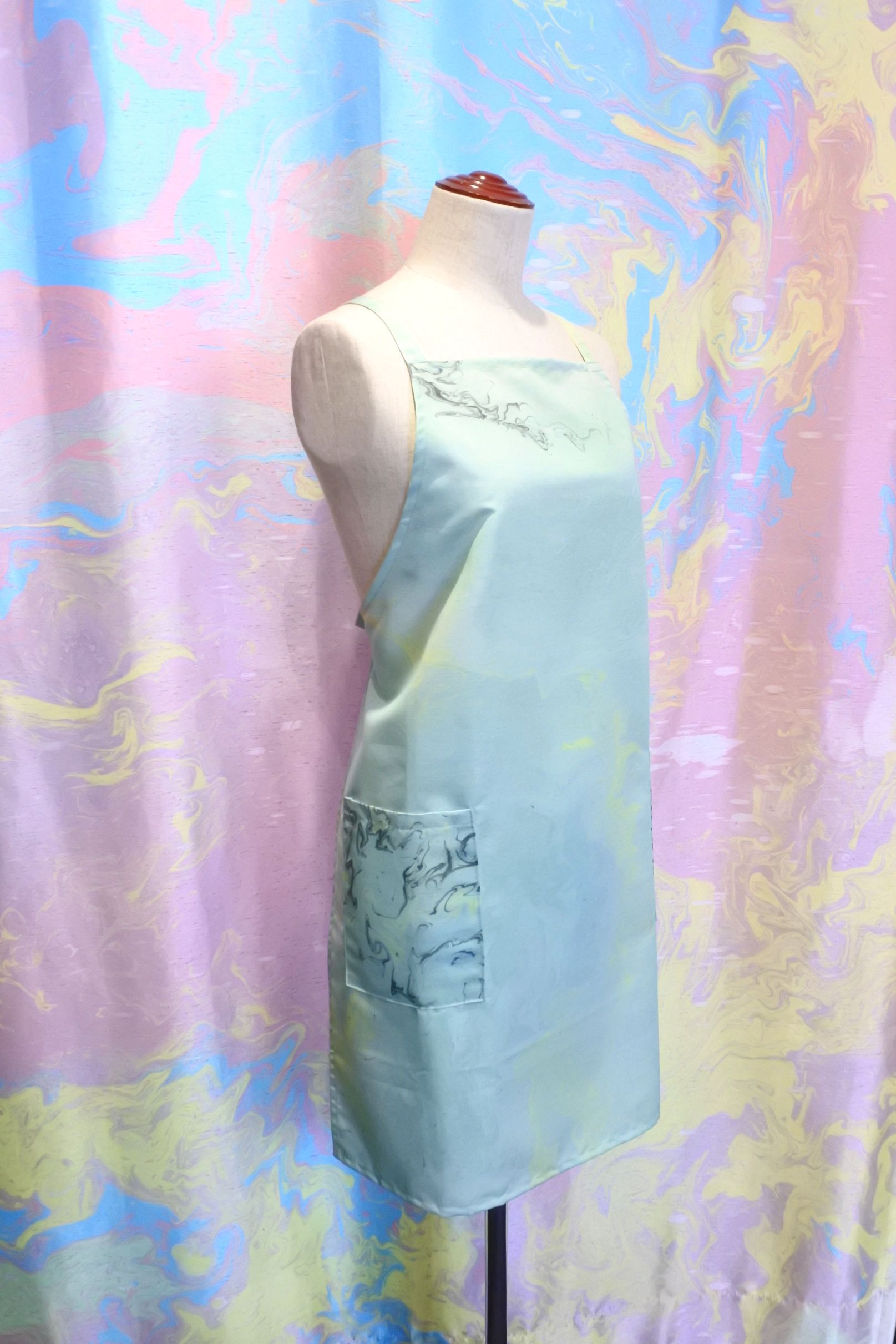 KEIKO KOMAマーブリングエプロンは、大判のデジタルプリント生地から裁断するため、写し出されるマーブリングは一点一点異なります。