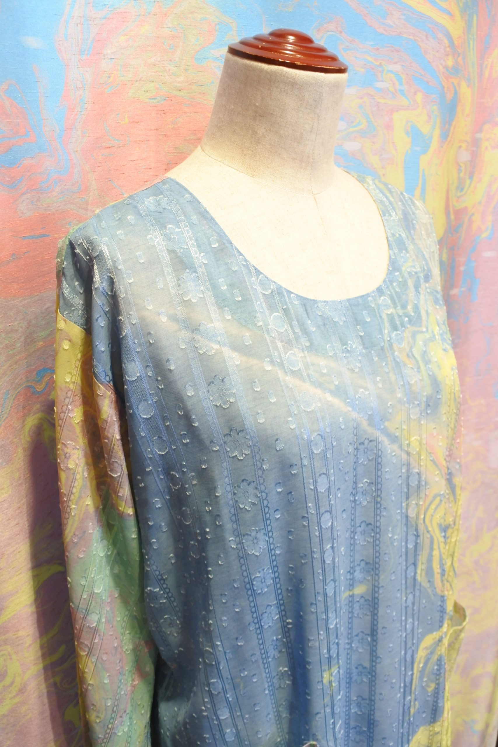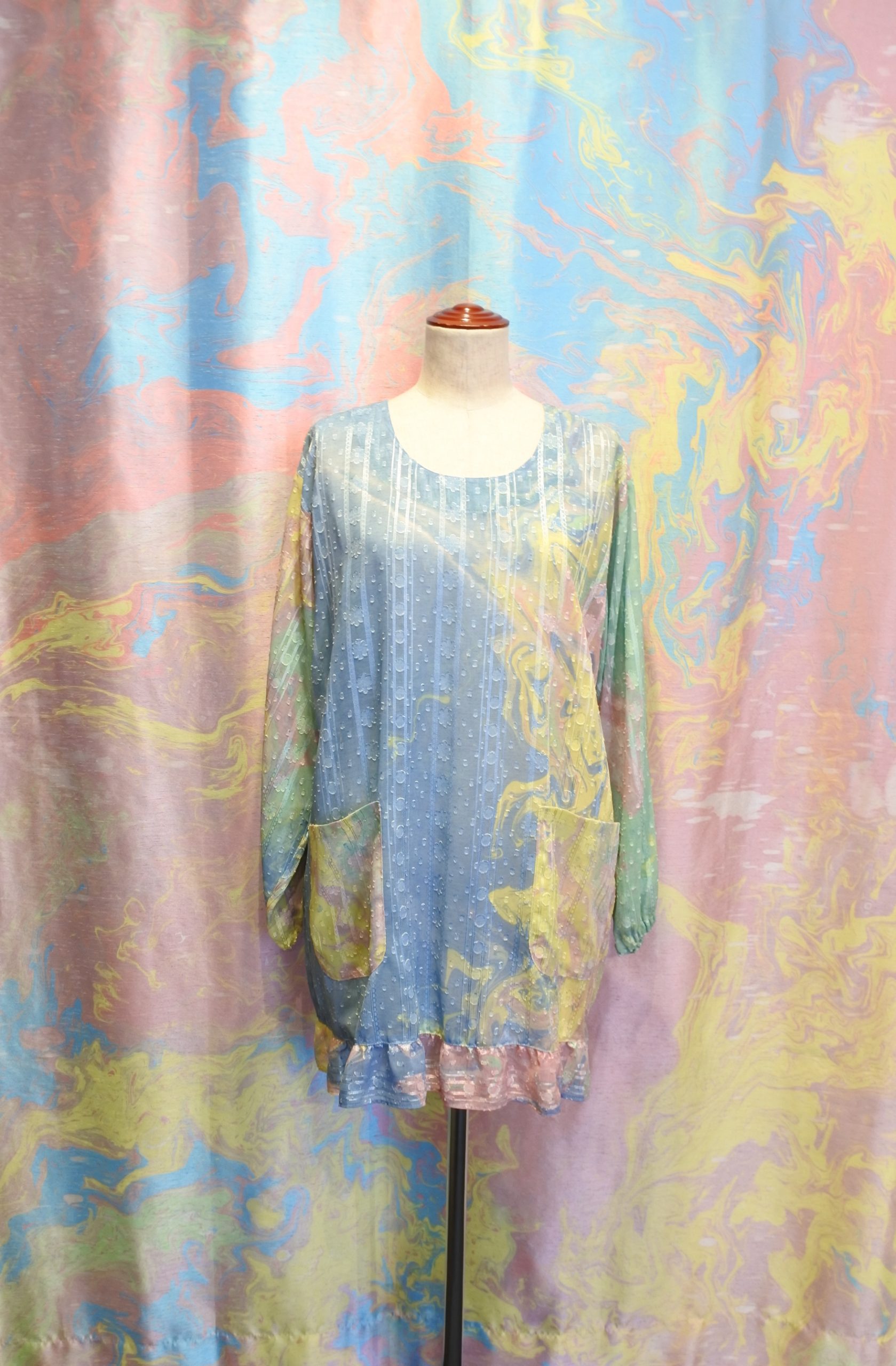 KEIKO KOMAマーブリングエプロンは、大判のデジタルプリント生地から裁断するため、写し出されるマーブリングは一点一点異なります。