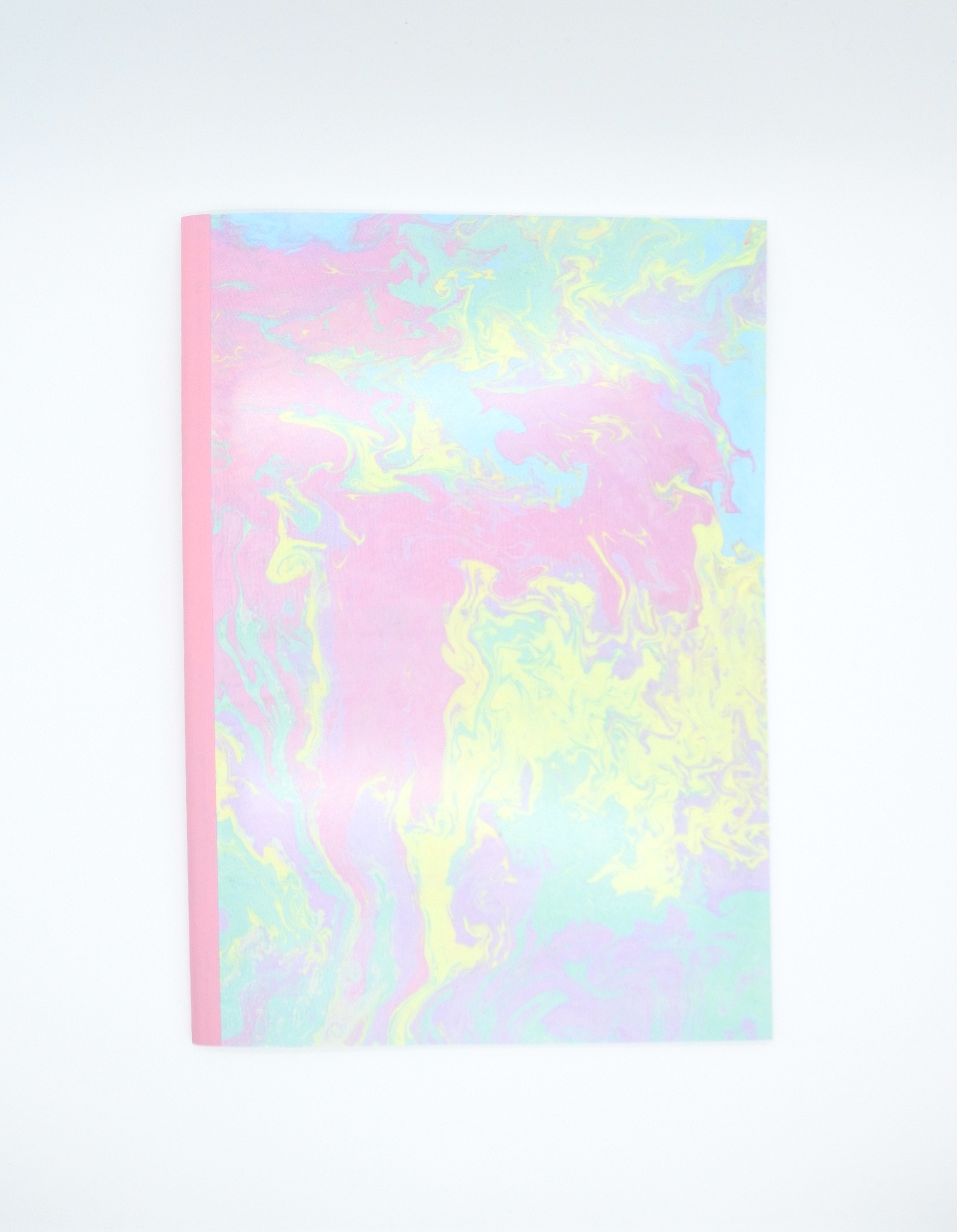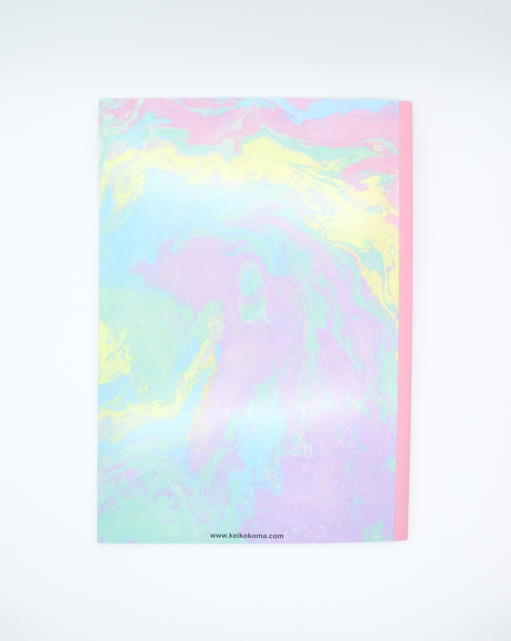 色鮮やかなマーブリング模様が表紙のノートです。中は爽やかなスカイブルーの7mm罫線となっております。