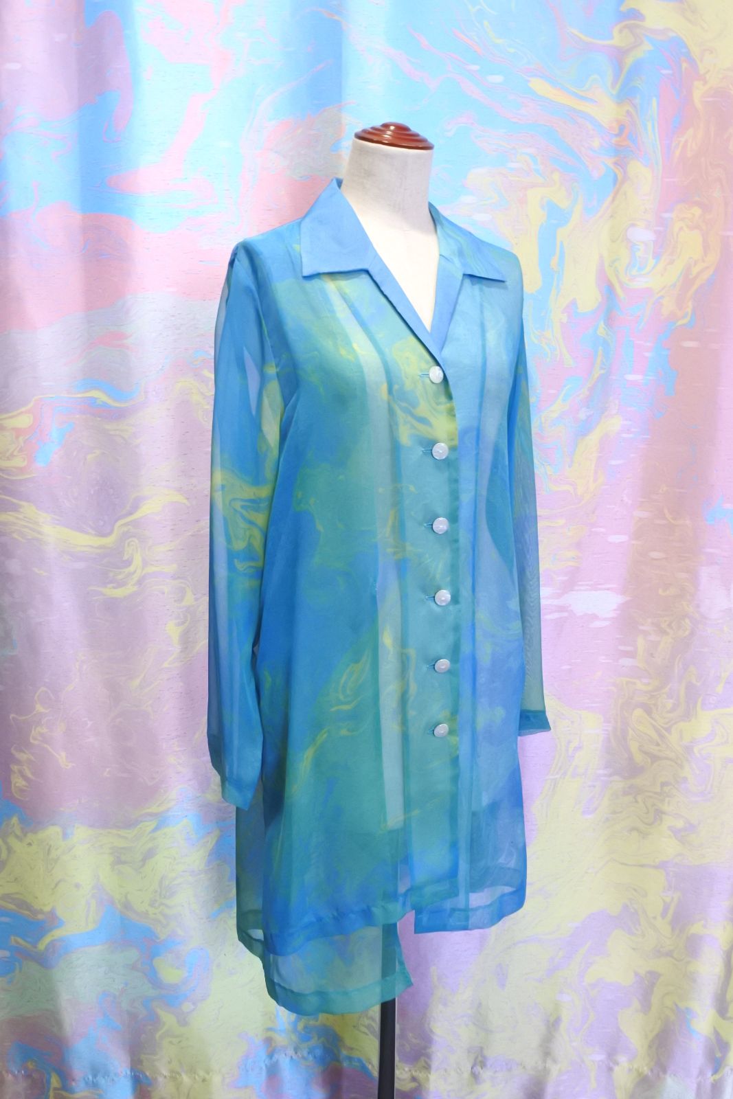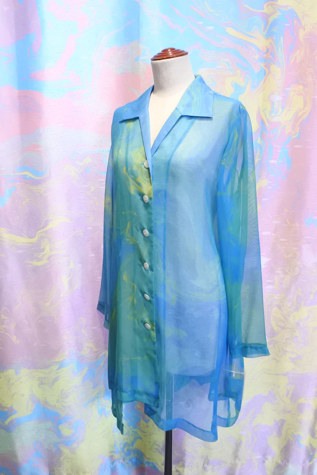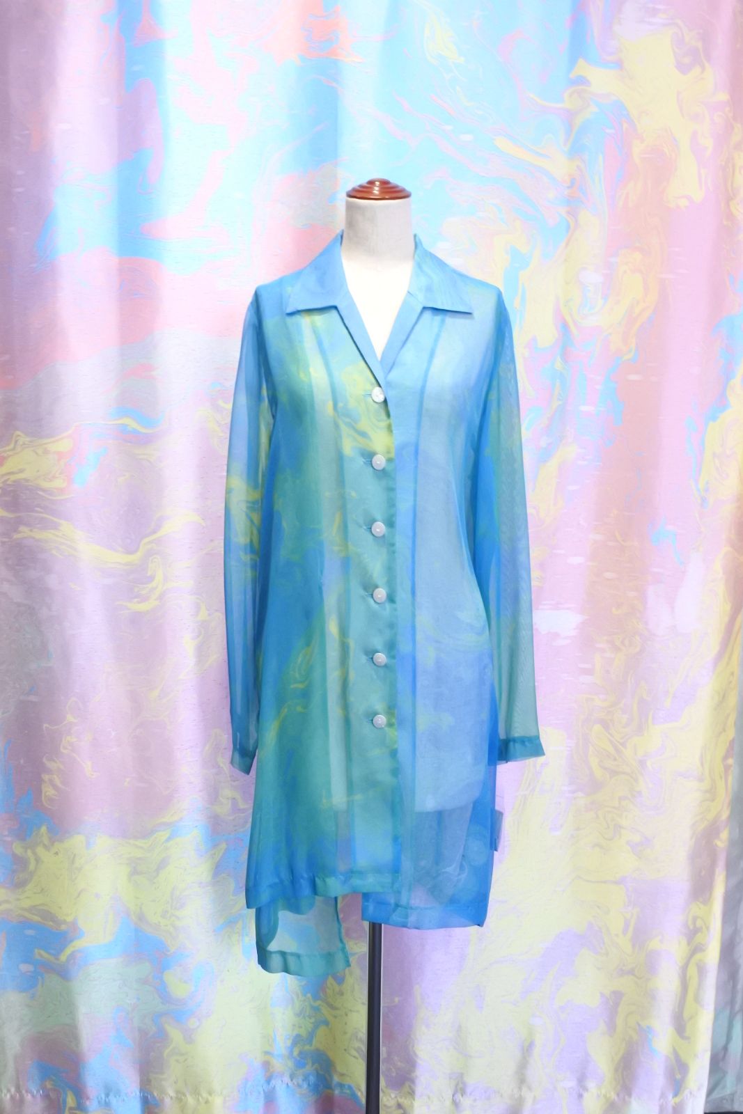 KEIKO KOMAマーブリングシフォンブラウスは、大判のデジタルプリント生地から裁断するため、写し出されるマーブリングは一点一点異なります。